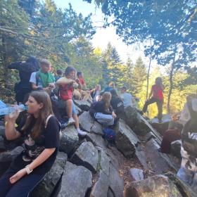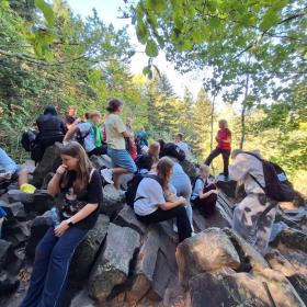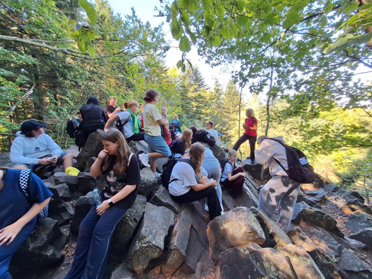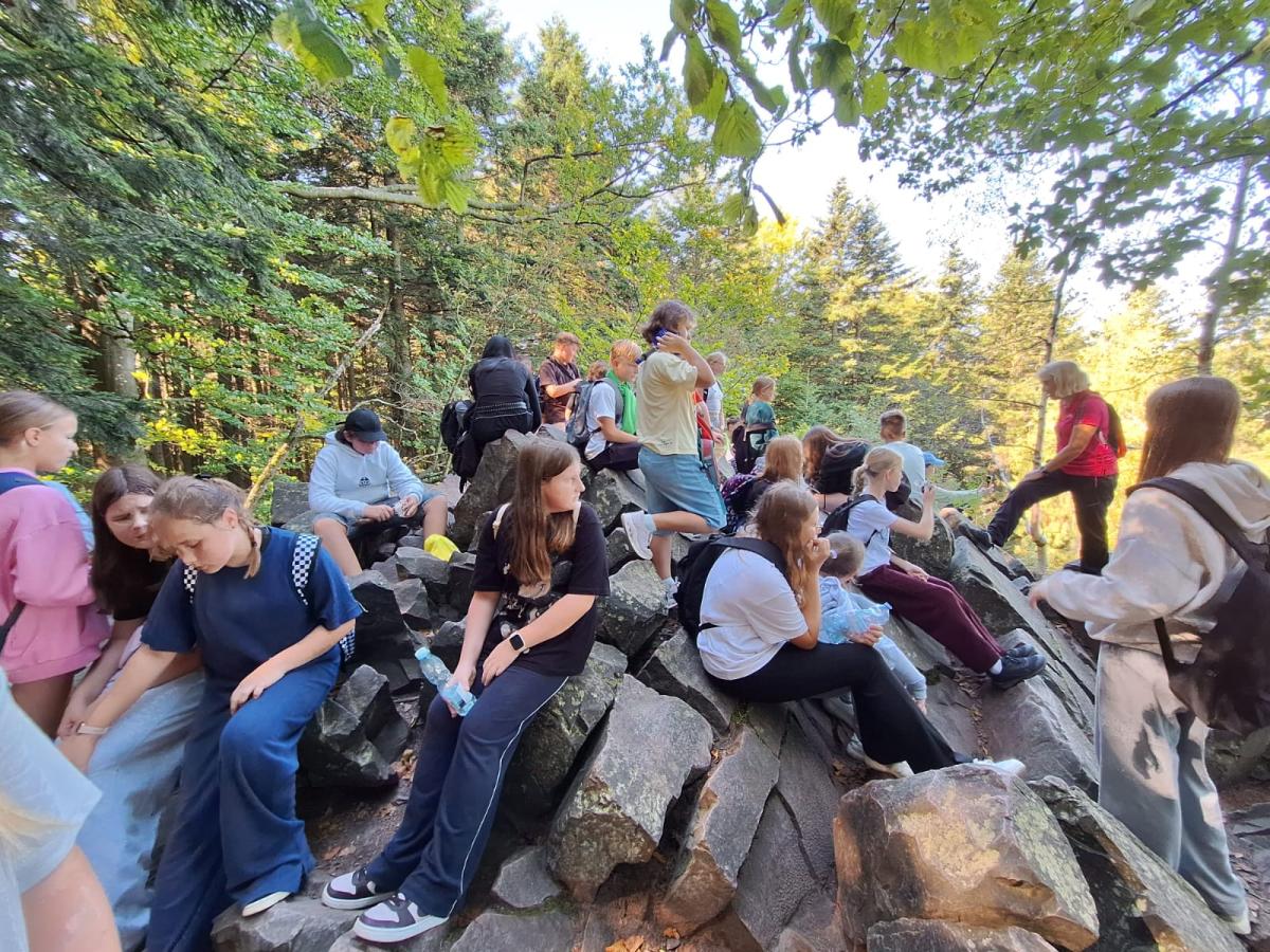 22 września uczniowie klas szóstych pojechali do Świętej Katarzyny. Najpierw zwiedzili zespół klasztorny bernardynek (zobaczyli m.in. figurę świętej, od której wzięła nazwę miejscowość), potem słynną kapliczkę z własnoręcznym podpisem Stefana Żeromskiego. Główną częścią wycieczki było wejście czerwonym szlakiem turystycznym, prowadzącym od źródełka świętego Franciszka, na szczyt najwyższego wzniesienia Gór Świętokrzyskich – Łysicy. Wędrując terenem Świętokrzyskiego Parku Narodowego uczniowie podziwiali piękno starego drzewostanu, odwiedzili też gołoborze. Niezwykłego uroku dodała wyprawie piękna, słoneczna pogoda.