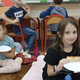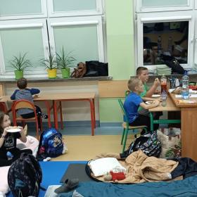 Klasa 2b uczestniczyła w szkolnym nocowaniu. Już po raz drugi uczniowie mieli okazję do wspólnej zabawy w takim wydaniu. Były zabawy, "bitwy na poduszki", pizza, rodzinne poczytanki, zajęcia z Policją oraz seans filmowy. Dziękujemy naszej mamie - Pani Oli za świetną książkę i gościnny udział w imprezie. Każdy uczestnik wyszedł z wielkim uśmiechem.