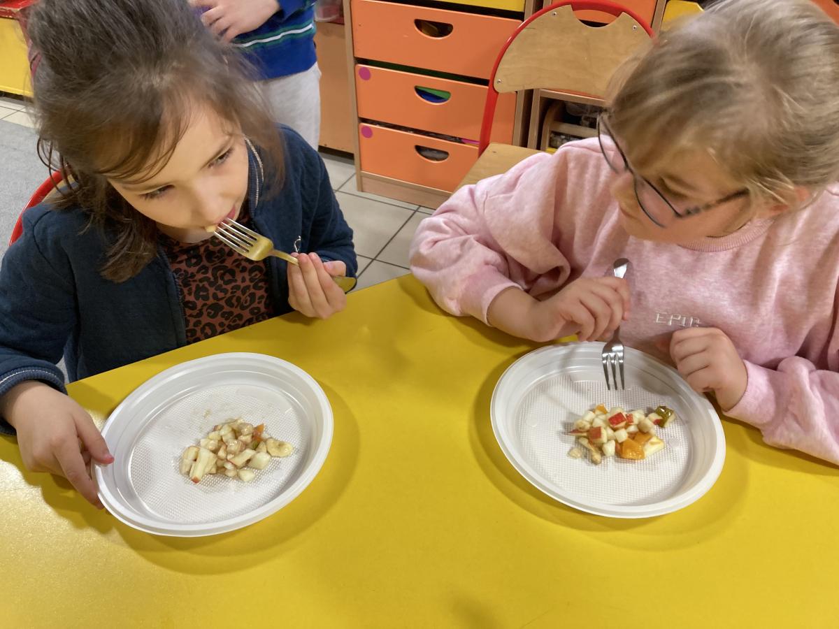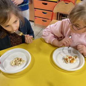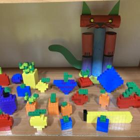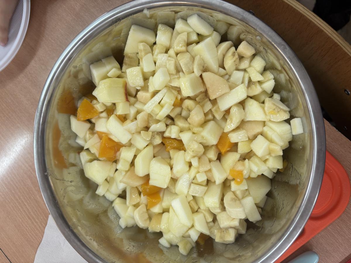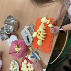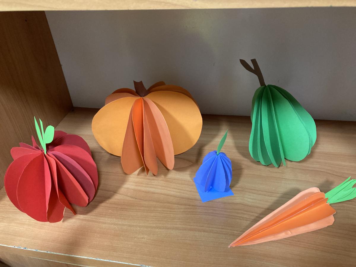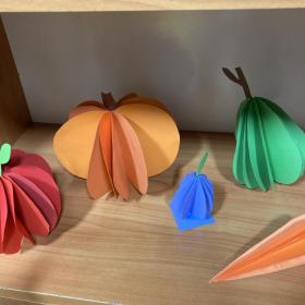 Wspólnie poznawaliśmy zasady zdrowego żywienia-rozmawialiśmy o tym co warto jeść,a czego unikać.Wspólnie wykonaliśmy piramidę zdrowego żywienia, dzieci oglądały filmy edukacyjne i śpiewały piosenki o zdrowych produktach.Nie zabrakło też praktyki-przygotowaliśmy pyszną sałatkę owocową .Analizowaliśmy składy produktów spożywanych przez dzieci. Nie zabrakło też zabaw i konkurencji sportowych z dynią. Z klocków Lego powstawały jagódki, marchewki, jabłka… i owoce, warzywa 3D z kartek bloku technicznego. Zdobyta wiedza na pewno będzie pomocna w komponowaniu codziennego menu. Serdecznie dziękujemy pani Kasi Tuz za owoce, z których mogliśmy tworzyć nasze kulinarne dzieło.