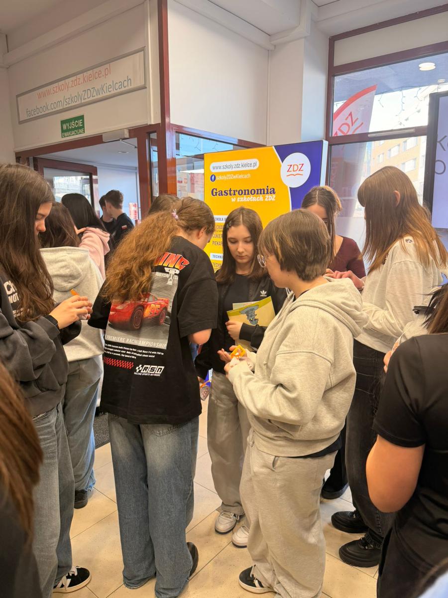 Dziś klasa 8a zamieniła szkolne ławki na pełen wrażeń dzień w kieleckim ZDZ-cie! Nasi ósmoklasiści mieli okazję sprawdzić, jak wygląda nauka "od kuchni" – i to dosłownie!