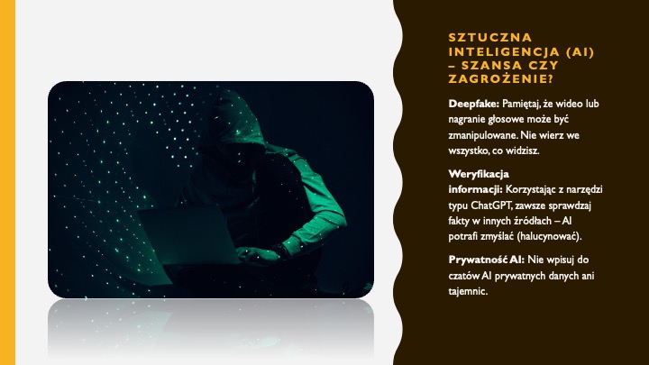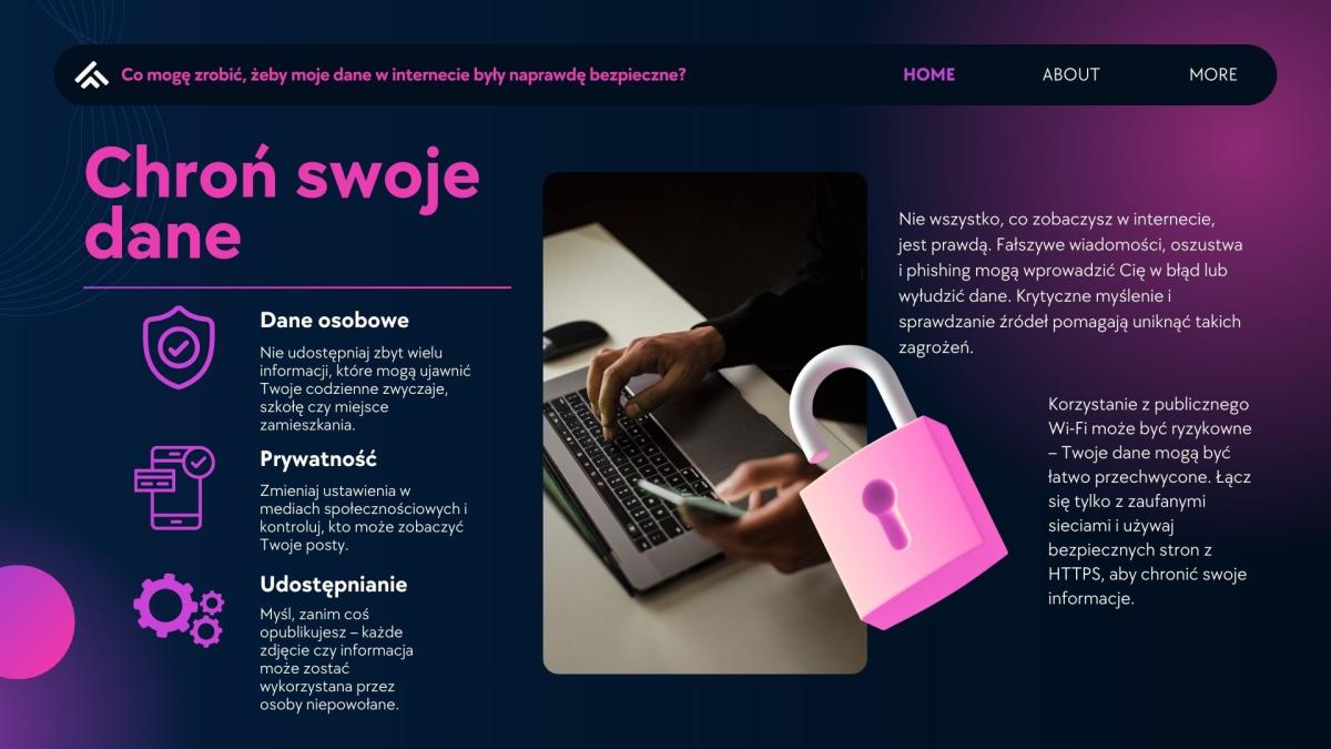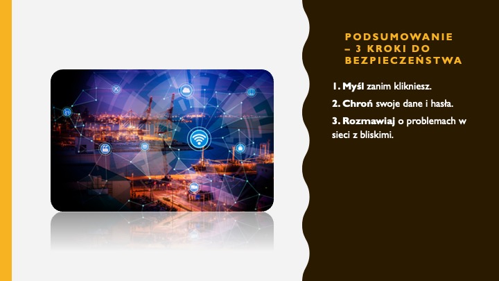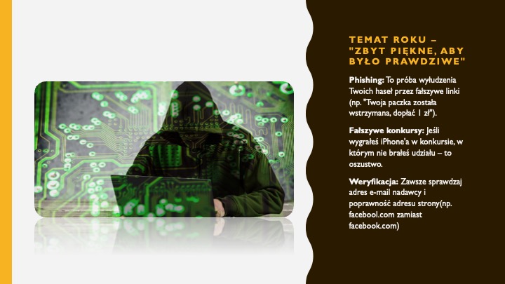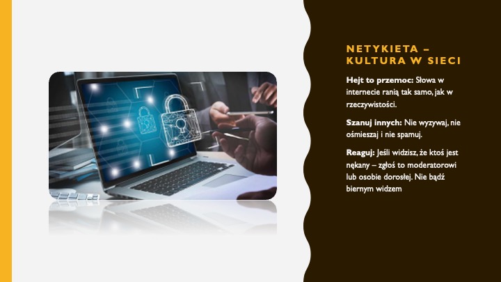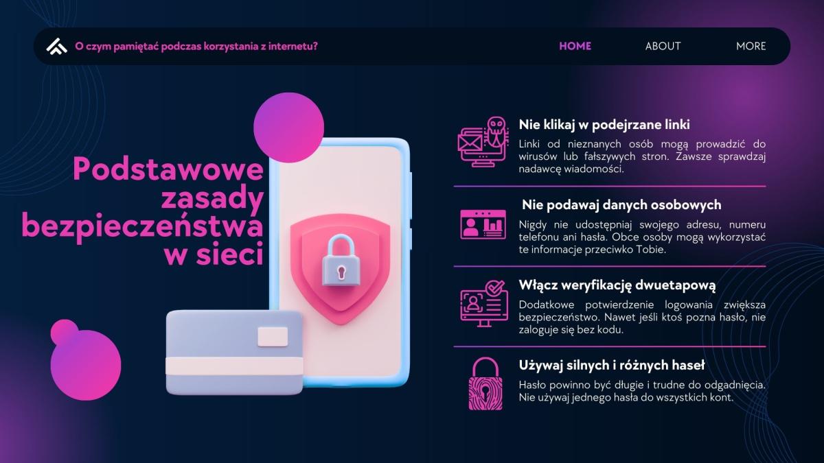 Podczas zajęć uczniowie rozmawiali m.in. o tym, jak chronić swoje dane osobowe w sieci, tworzyć bezpieczne hasła, rozpoznawać niebezpieczne wiadomości i fałszywe strony internetowe, a także jak reagować na hejt i cyberprzemoc. Nie zabrakło również rozmów o kulturze w Internecie, odpowiedzialnym publikowaniu treści oraz o tym, jak ważne jest krytyczne podejście do informacji znalezionych w sieci.