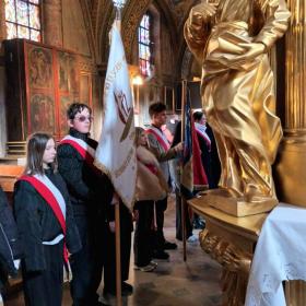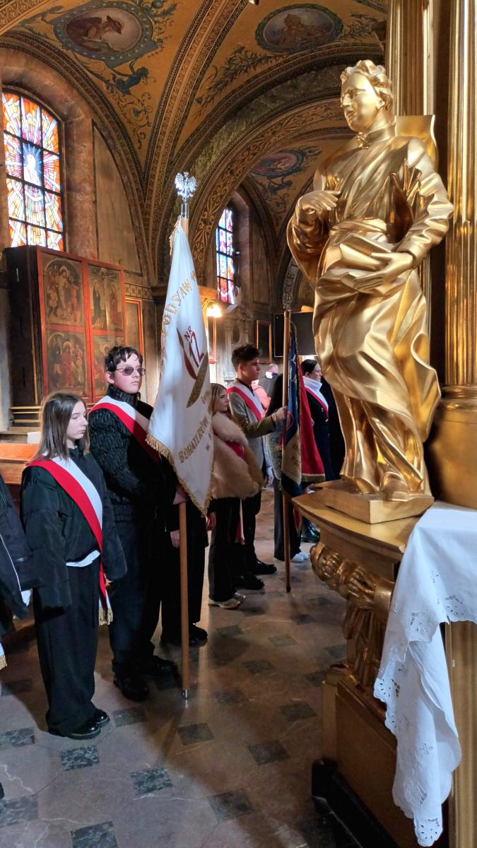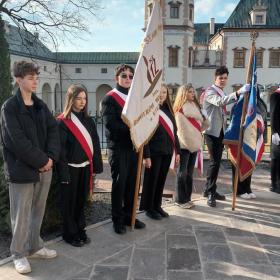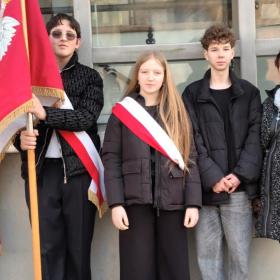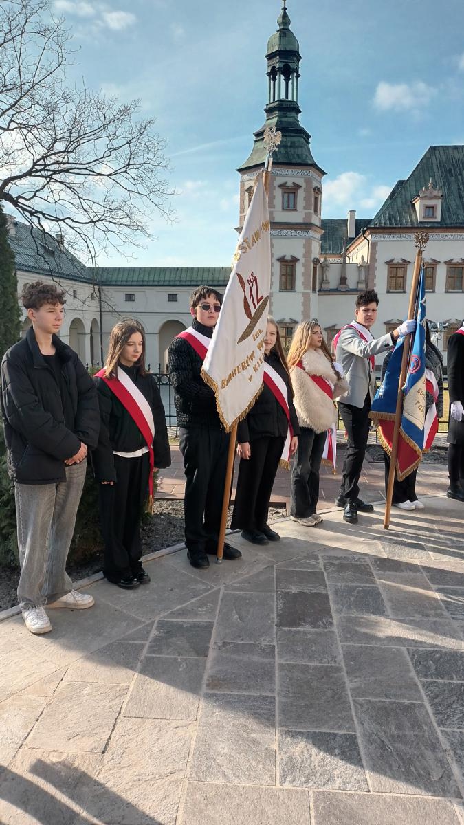 W niedzielę 1.03.2026r., na zaproszenie Delegatury Instytutu Pamięci Narodowej w Kielcach, delegacja naszych uczniów w poczcie sztandarowym wzięła udział w miejskich uroczystościach z okazji Narodowego Dnia Pamięci „Żołnierzy Wyklętych”. Święto zostało ustanowione w rocznicę egzekucji przywódców  IV Zarządu Zrzeszenia „Wolność i Niezawisłość” z 1 marca 1951 r. i jest obchodzone od 2011 r. jako forma upamiętnienia żołnierzy II konspiracji niepodległościowej. Po uroczystej Mszy św. w Bazylice Katedralnej zostały złożone kwiaty i znicze przy Ścianie Straceń, w dawnym Więzieniu Kieleckim. Również nasi przedstawiciele złożyli wiązankę kwiatów od społeczności SP Nr 12 w Kielcach. Następnie odbyły się oficjalne uroczystości wojskowe, w obecności władz Kielc i województwa oraz pocztów sztandarowych, na dziedzińcu Ośrodka Myśli Patriotycznej i Obywatelskiej. Wzorową postawą w poczcie sztandarowym wykazali się nasi uczniowie: Antoni z kl. 7b oraz Maja, Milana i Stas z kl. 8a. Dziękuję Uczniom i Rodzicom za zaangażowanie.
