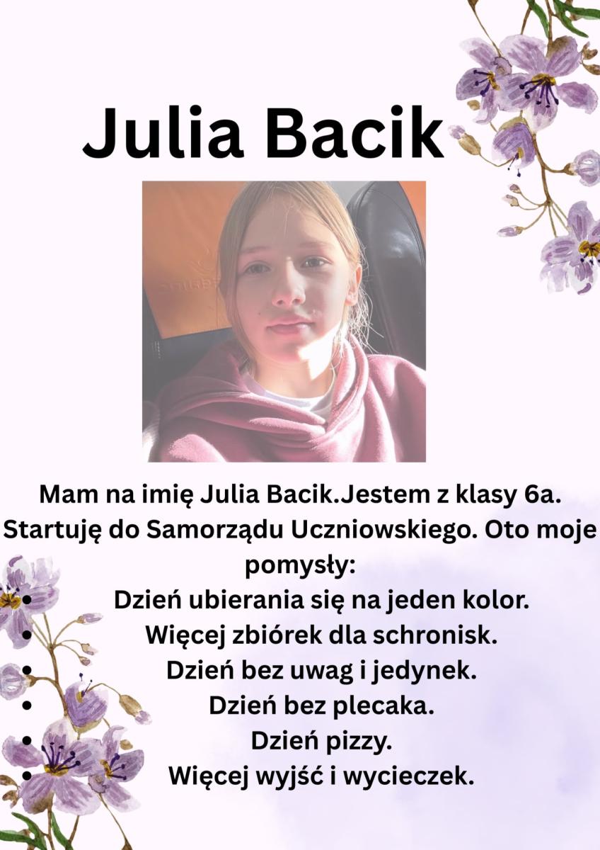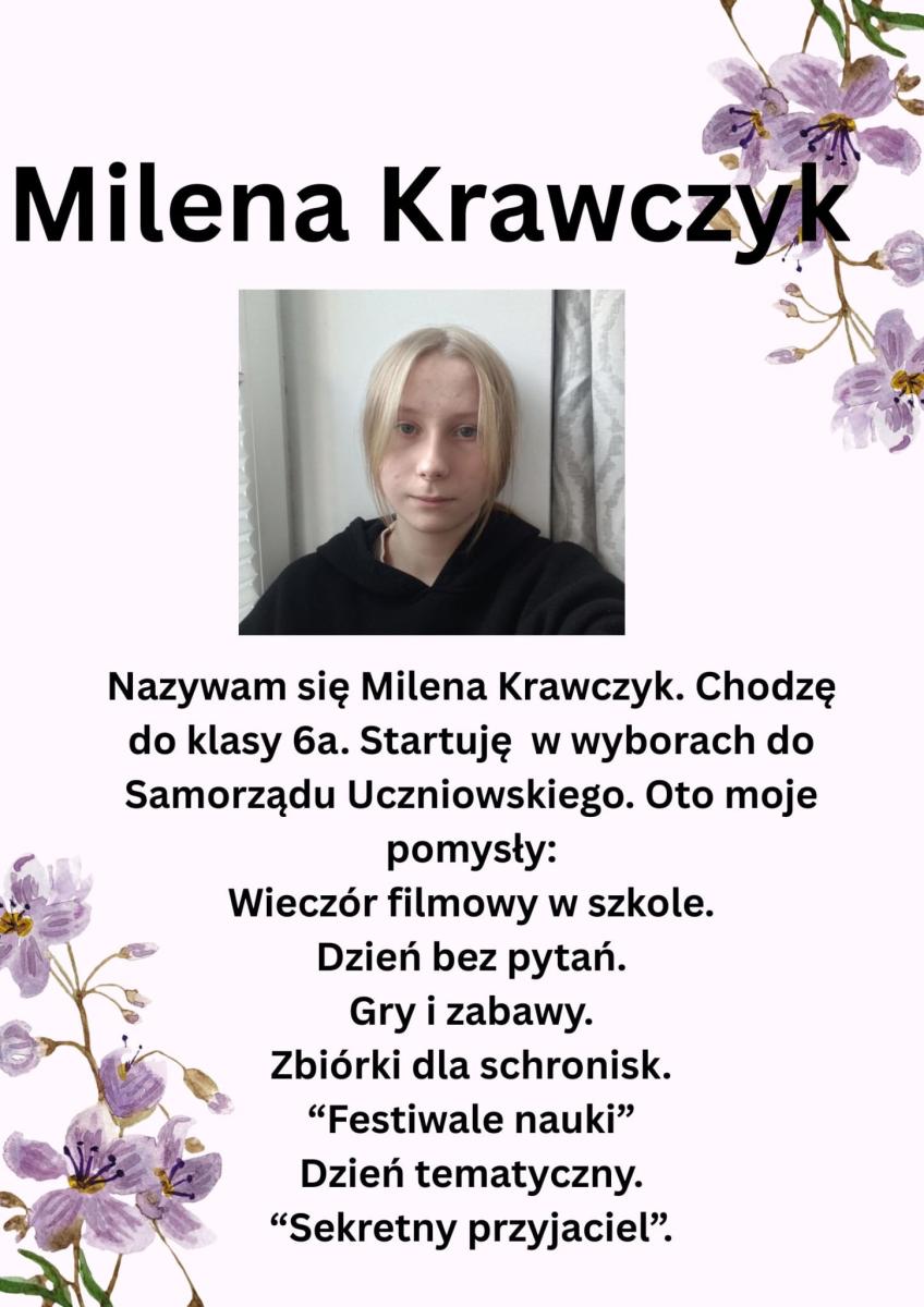 Przedstawiamy kandydatów, którzy uzyskali rekomendację klas, w wyborach do Samorządu Uczniowskiego w bieżącym roku szkolnym.