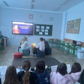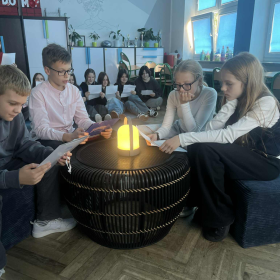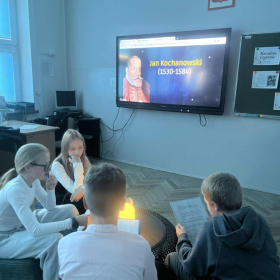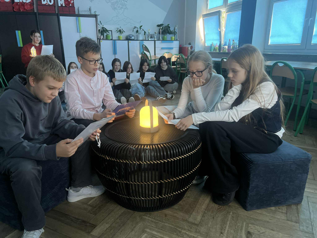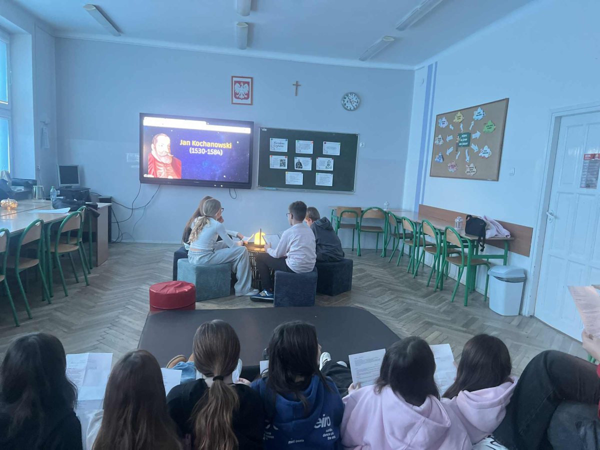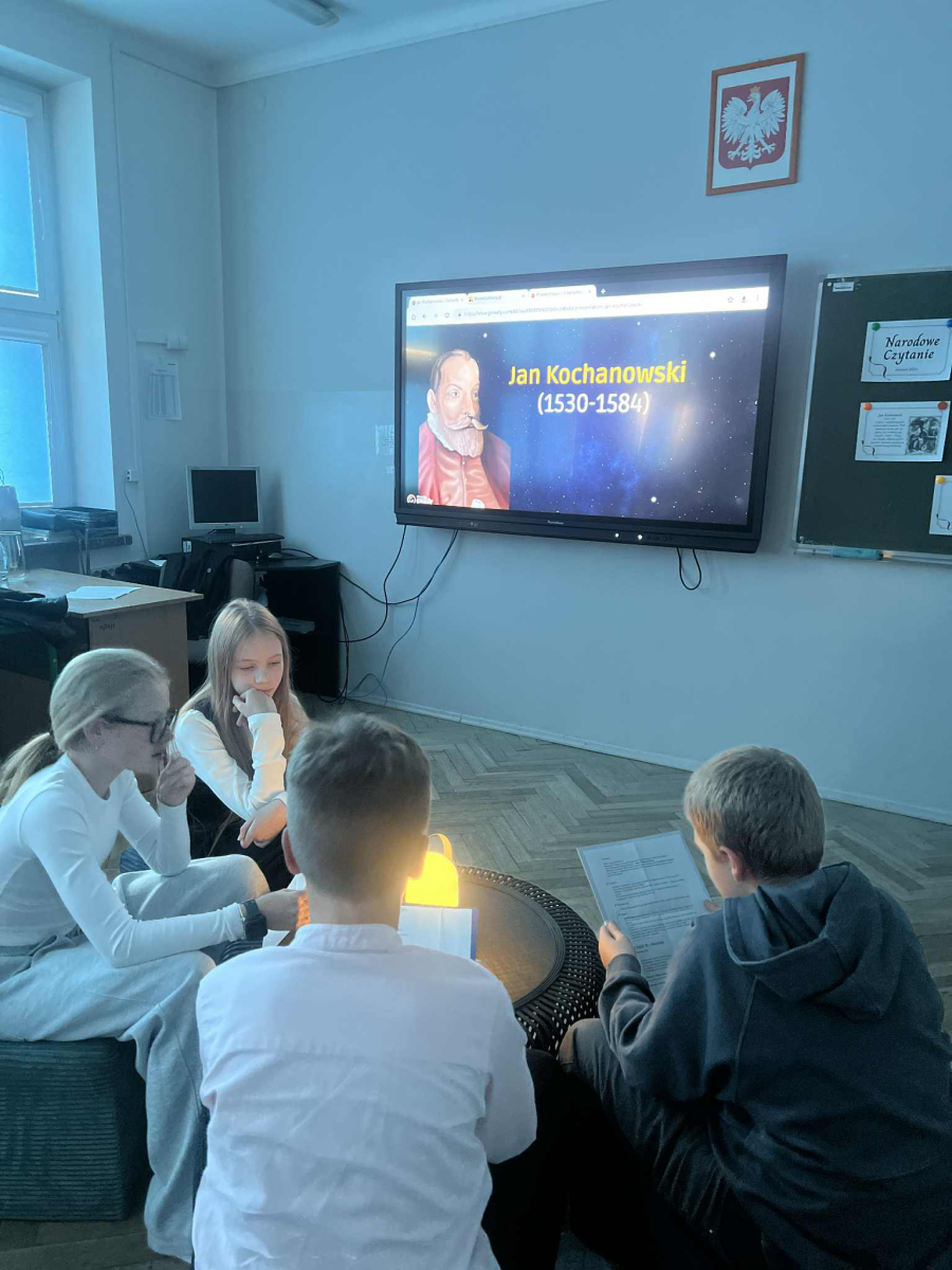Uczniowie klas 6–8 naszej szkoły spędzili piątkowe popołudnie na wspólnym czytaniu poezji Jana Kochanowskiego. Spotkanie odbyło się z inspiracji ogólnopolską akcją Narodowe Czytanie, a jego celem było promowanie czytelnictwa oraz pokazanie, że poezja – mimo upływu wieków – wciąż potrafi poruszać, inspirować i łączyć ludzi.\