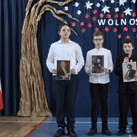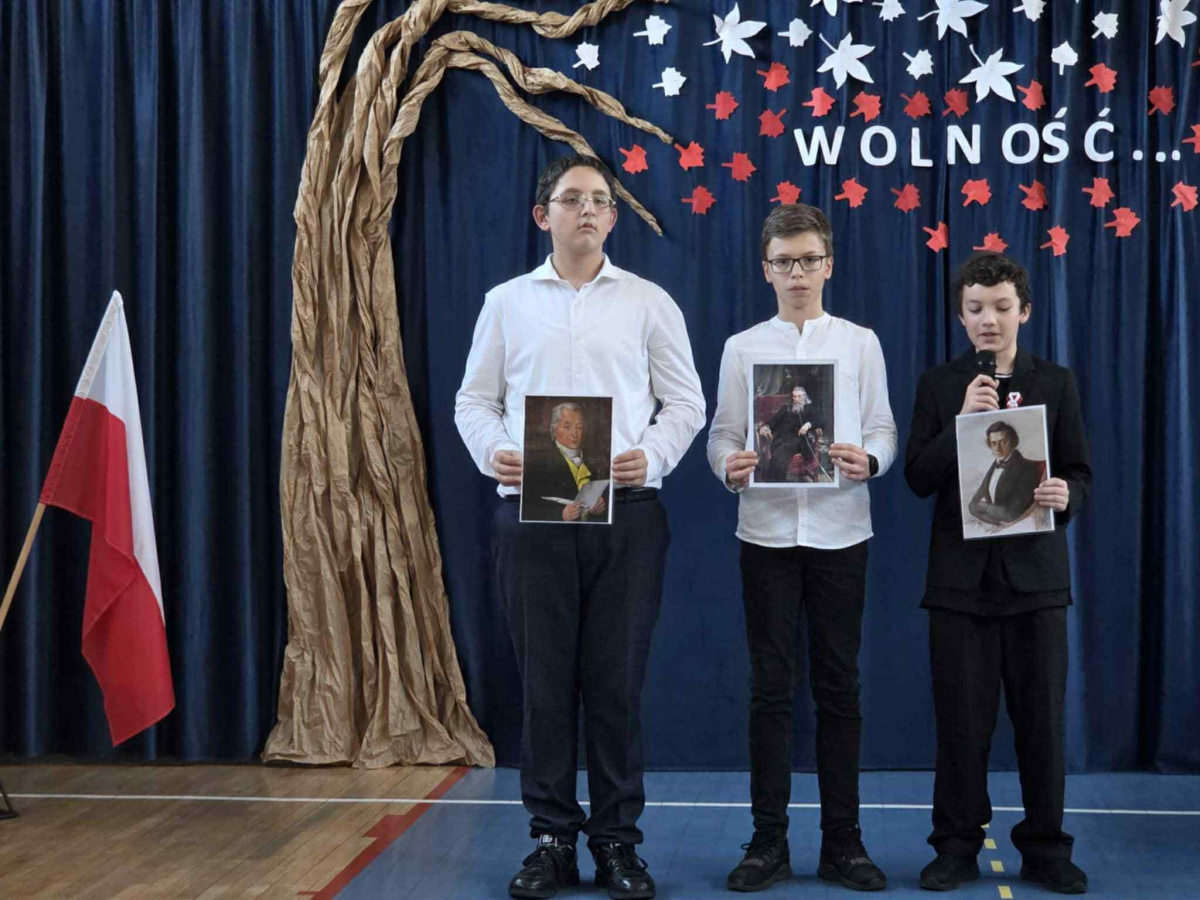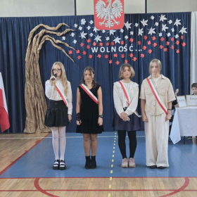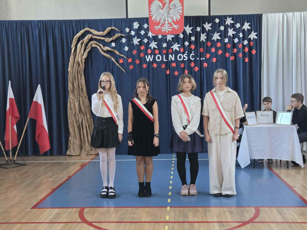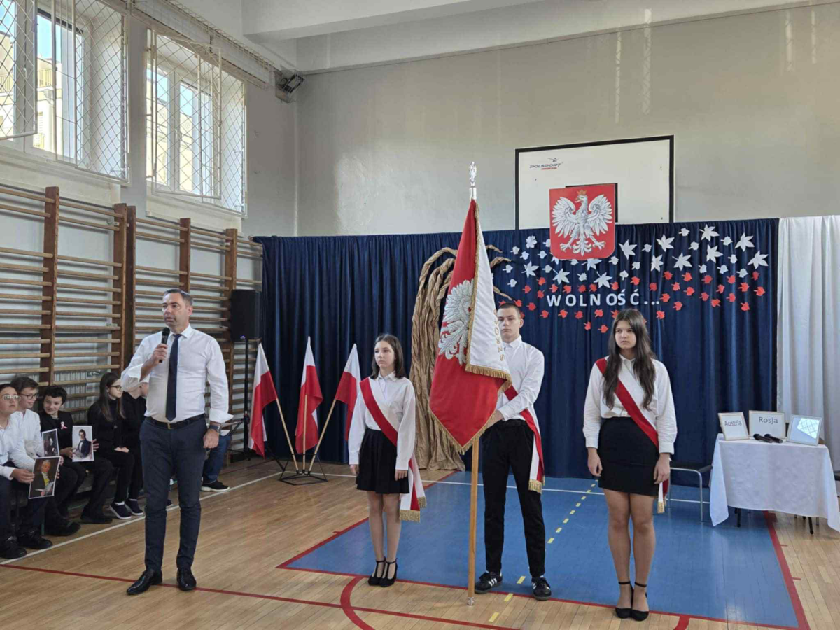 Uroczystość rozpoczęła się od wprowadzenia sztandaru i odśpiewania hymnu narodowego. W swoim wystąpieniu Pan Dyrektor szkoły podkreślił znaczenie tego święta oraz wartość wolności i patriotyzmu. Uczniowie przygotowali program artystyczny, w skład którego wchodziły recytacje wierszy oraz scenki historyczne, które przybliżyły nam wydarzenia związane z walką o niepodległość.