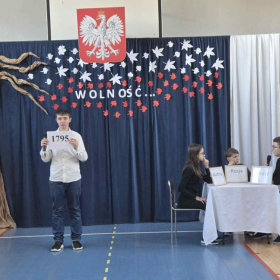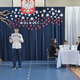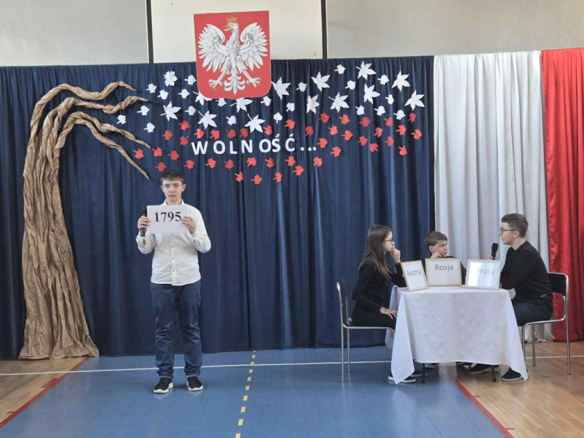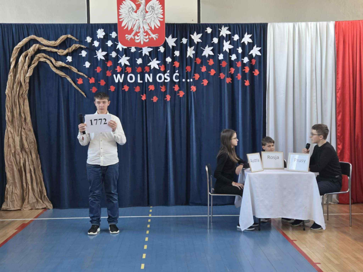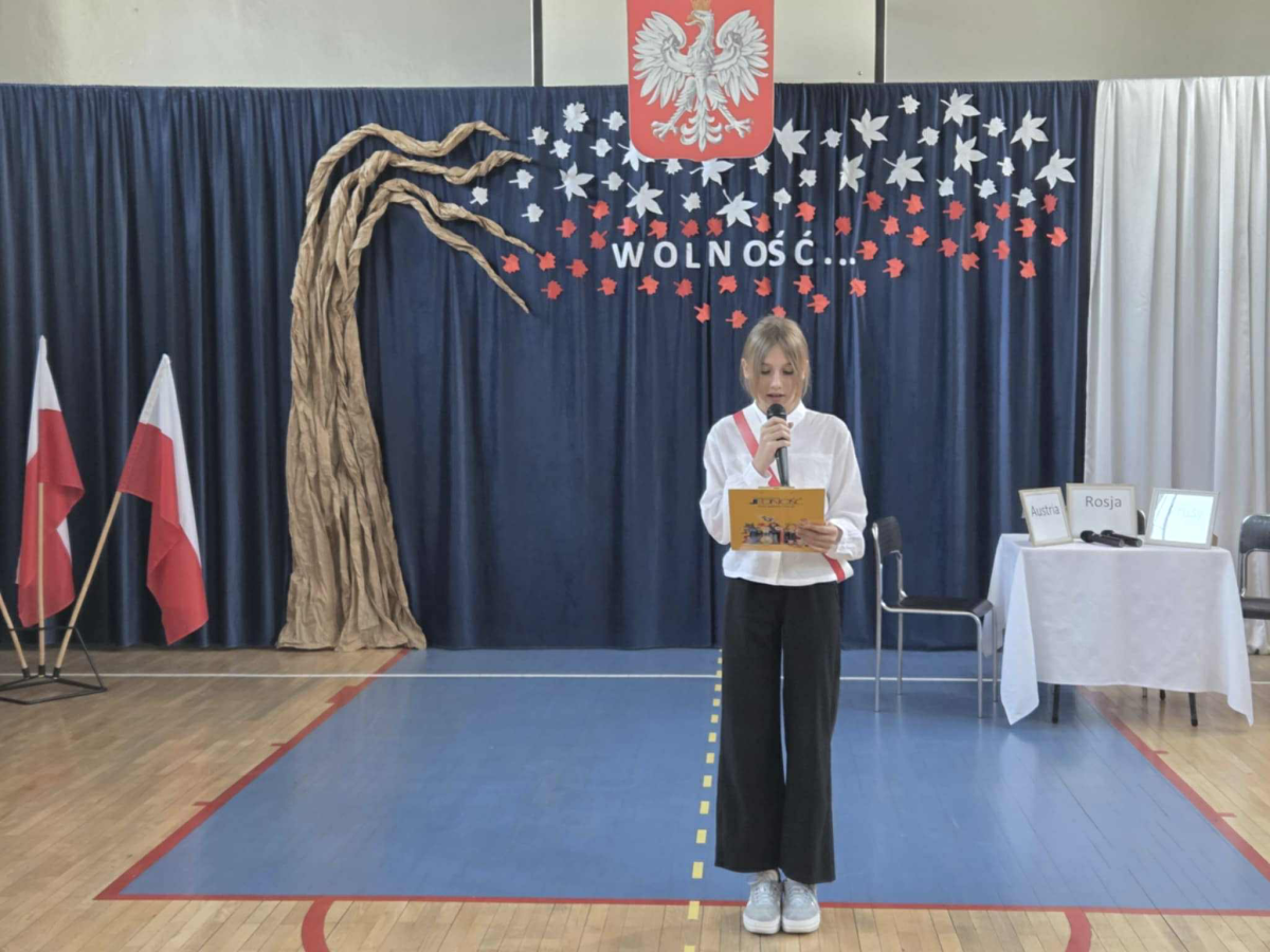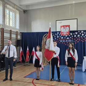 Uroczystość rozpoczęła się od wprowadzenia sztandaru i odśpiewania hymnu narodowego. W swoim wystąpieniu Pan Dyrektor szkoły podkreślił znaczenie tego święta oraz wartość wolności i patriotyzmu. Uczniowie przygotowali program artystyczny, w skład którego wchodziły recytacje wierszy oraz scenki historyczne, które przybliżyły nam wydarzenia związane z walką o niepodległość.