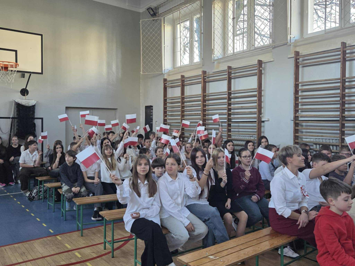 Na apelu z okazji Święta Niepodległości, który odbył się w piątek w naszej szkole, uczniowie oraz nauczyciele zgromadzili się, aby uczcić 11 listopada, dzień, w którym Polska odzyskała niepodległość w 1918 roku.