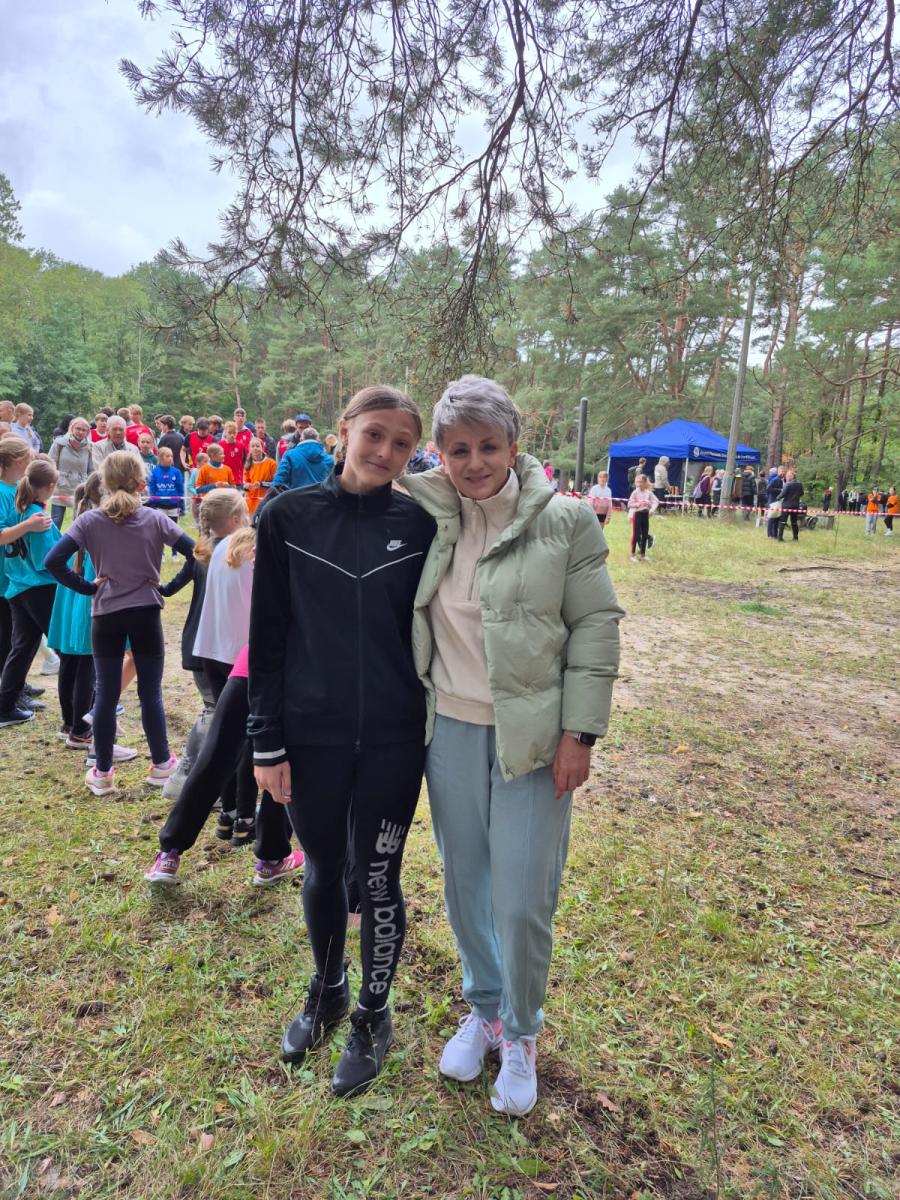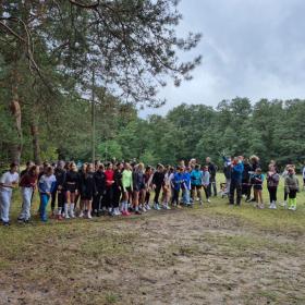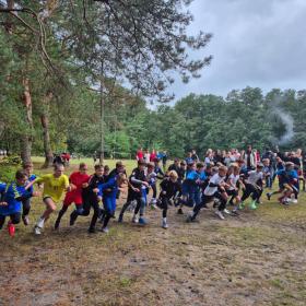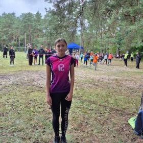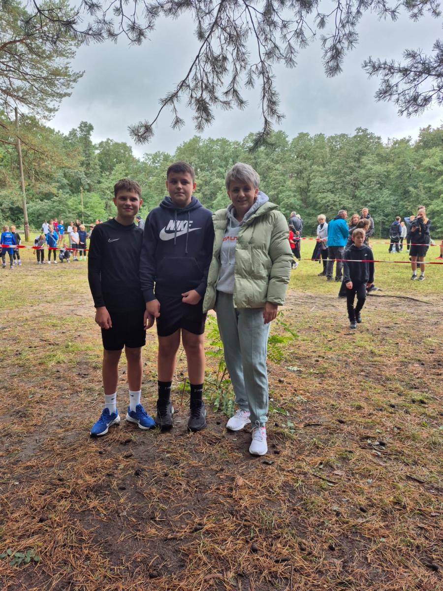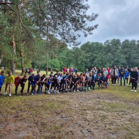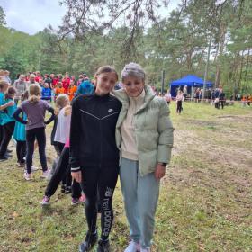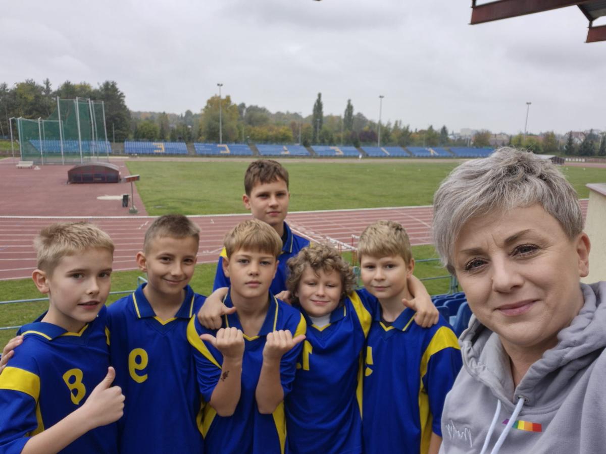 Uczniowie i nauczyciel podczas zawodów sportowych