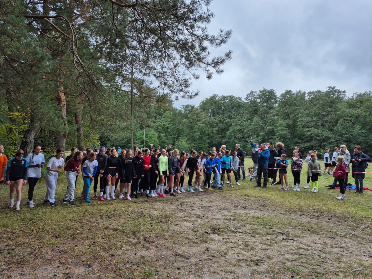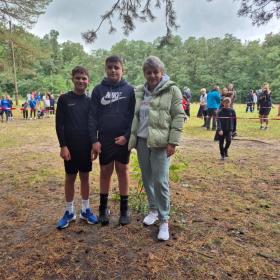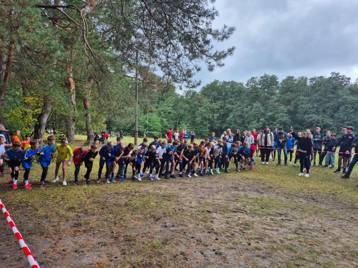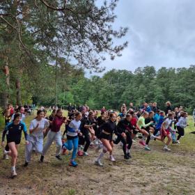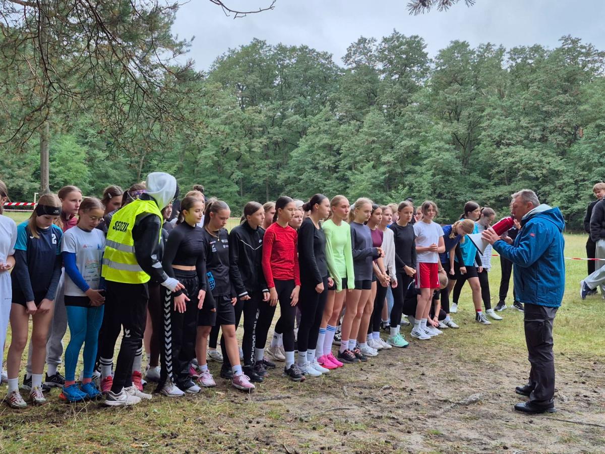 Uczniowie i nauczyciel podczas zawodów sportowych