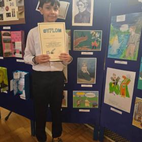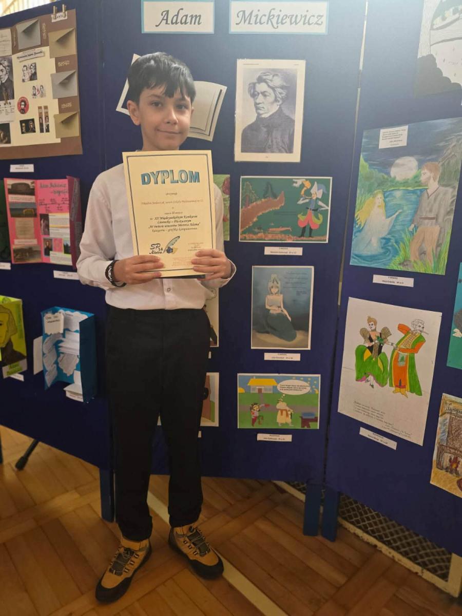 Z dumą informujemy, że Nikodem Stolarczyk, uczeń klasy 6b zdobył II miejsce w kategorii grafika komputerowa (dotycząca wybranego utworu Adama Mickiewicza). Opiekunem była Pani Iwona Szachowicz.