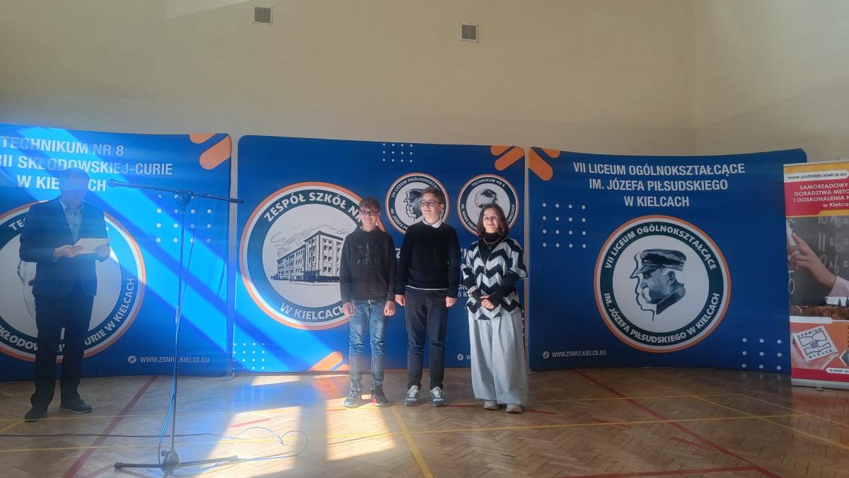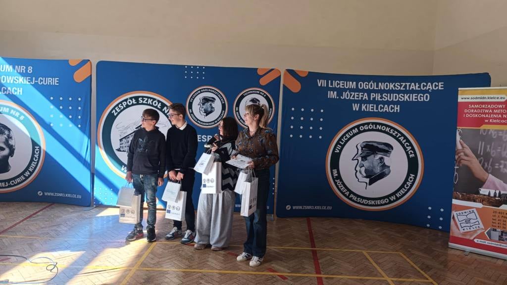 Nasi uczniowie ze Szkoły Podstawowej nr 12 w Kielcach zajęli drugie miejsce w XIII Miejskiej Grze Europejski Dzień Języków, rywalizując z 27 drużynami z kieleckich szkół podstawowych. W trakcie wydarzenia wykazali się niesamowitą prędkością, ogromną wiedzą oraz wyjątkowym sprytem. To wielki powód do dumy – serdeczne gratulacje dla naszych reprezentantów!